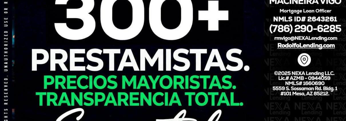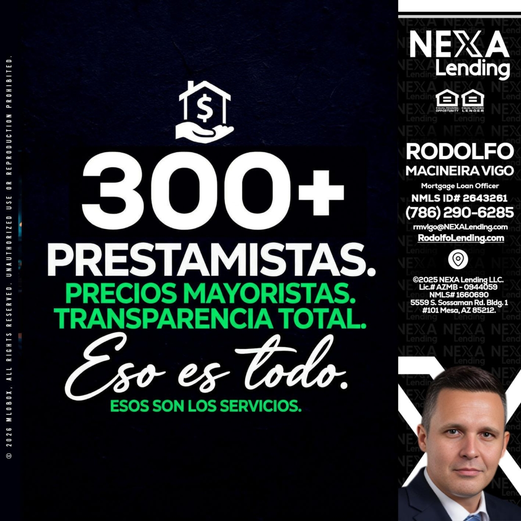 Hi, my name is Rodolfo Macineira Vigo. I’m a Loan Officer with NEXA Lending LLC., offering personalized mortgage solutions, fast customized quotes, great rates and service with integrity.