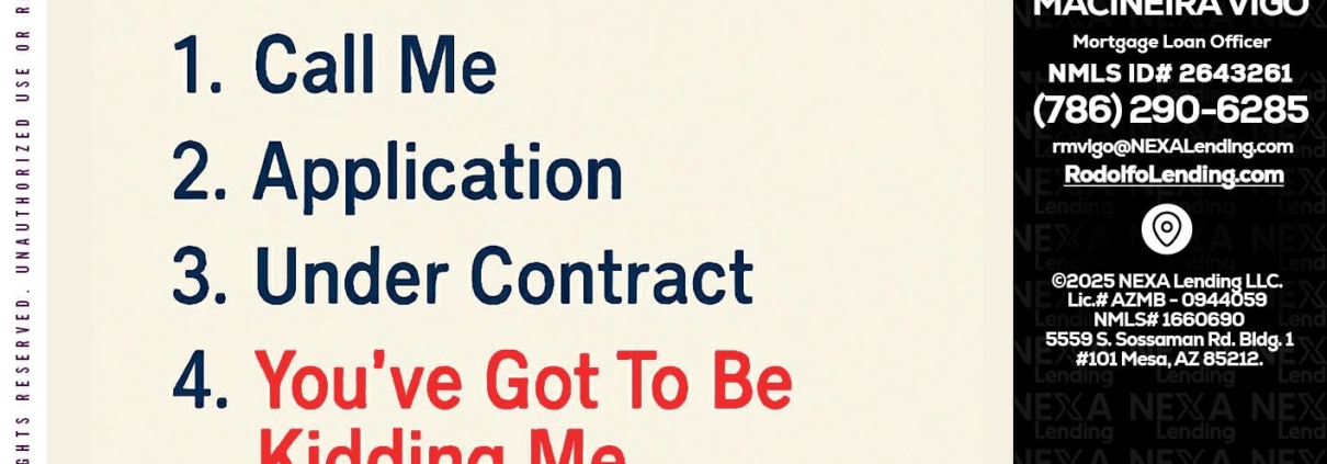 Hi, my name is Rodolfo Macineira Vigo. I’m a Loan Officer with NEXA Lending LLC., offering personalized mortgage solutions, fast customized quotes, great rates and service with integrity.