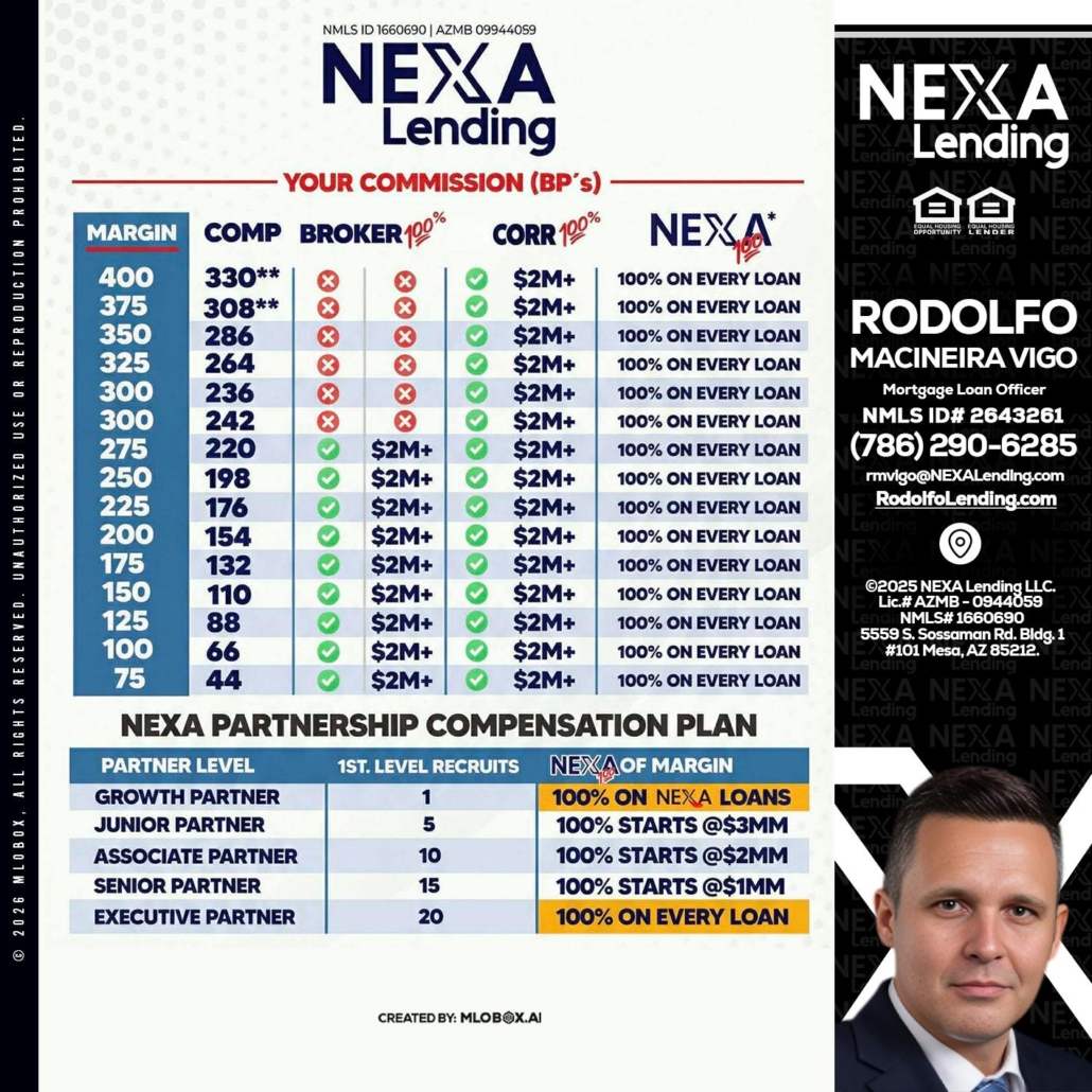 Hi, my name is Rodolfo Macineira Vigo. I’m a Loan Officer with NEXA Lending LLC., offering personalized mortgage solutions, fast customized quotes, great rates and service with integrity.