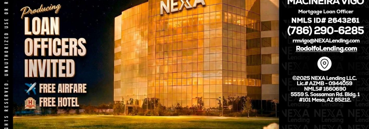 Hi, my name is Rodolfo Macineira Vigo. I’m a Loan Officer with NEXA Lending LLC., offering personalized mortgage solutions, fast customized quotes, great rates and service with integrity.