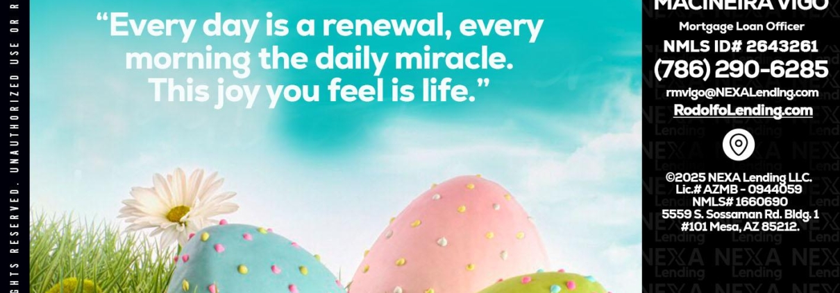 happy easter - Rodolfo Macineira Vigo -Mortgage Loan OfficerHi, my name is Rodolfo Macineira Vigo. I’m a Loan Officer with NEXA Lending LLC., offering personalized mortgage solutions, fast customized quotes, great rates and service with integrity.