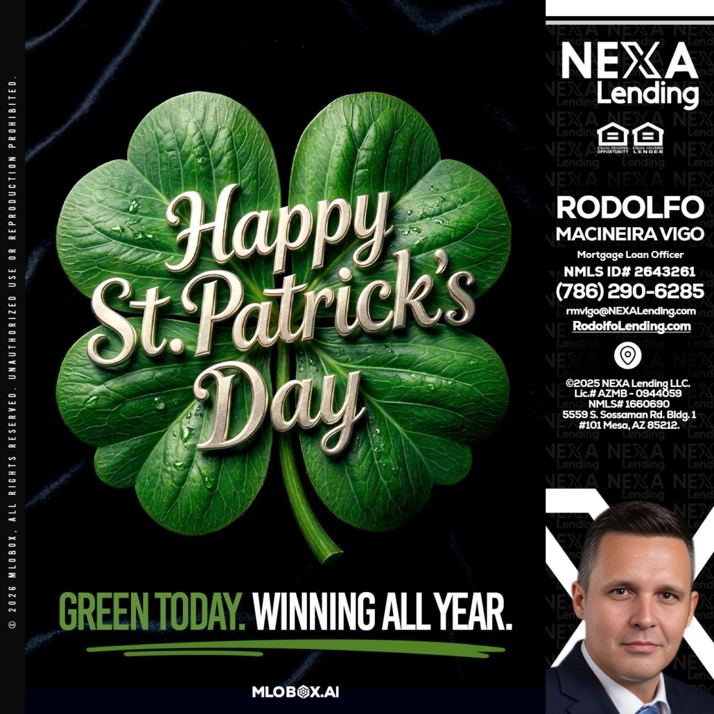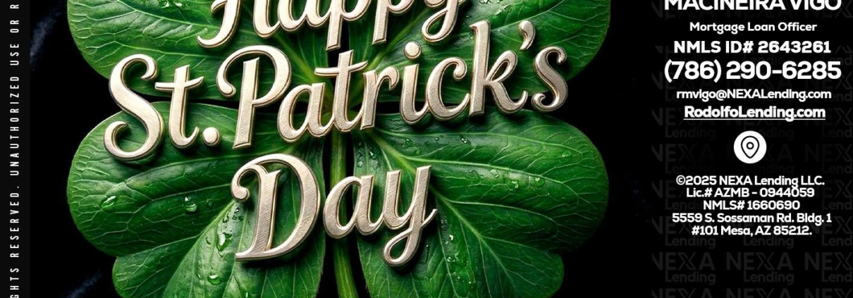 happy st. Patricks day - Rodolfo Macineira Vigo -Mortgage Loan OfficerHi, my name is Rodolfo Macineira Vigo. I’m a Loan Officer with NEXA Lending LLC., offering personalized mortgage solutions, fast customized quotes, great rates and service with integrity.