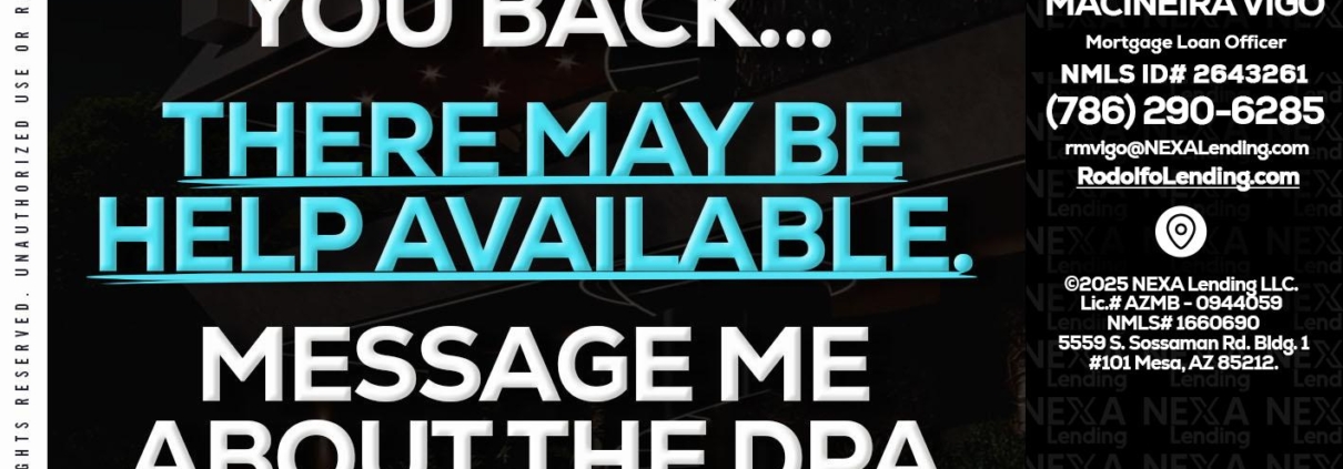 IF UPFRONT - Rodolfo Macineira Vigo -Mortgage Loan OfficerHi, my name is Rodolfo Macineira Vigo. I’m a Loan Officer with NEXA Lending LLC., offering personalized mortgage solutions, fast customized quotes, great rates and service with integrity.