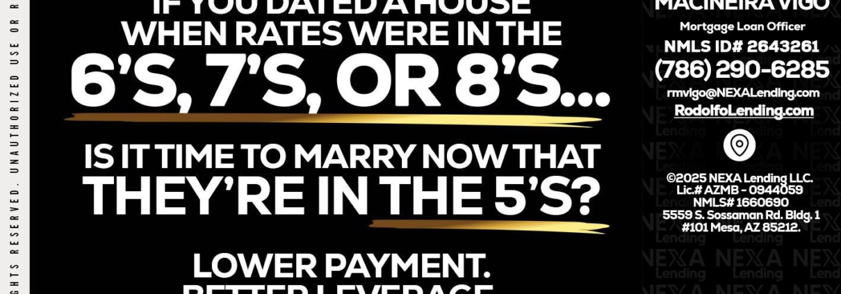 Hi, my name is Rodolfo Macineira Vigo. I’m a Loan Officer with NEXA Lending LLC., offering personalized mortgage solutions, fast customized quotes, great rates and service with integrity.