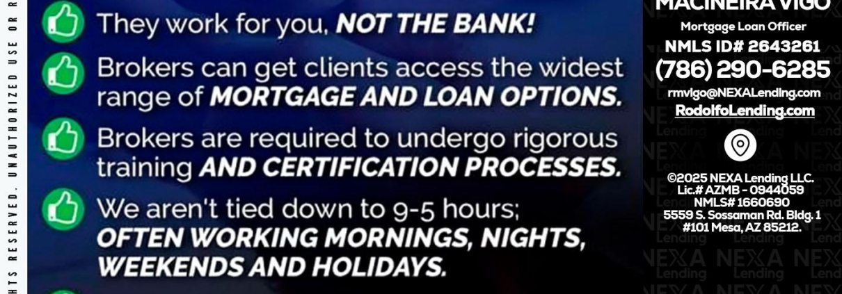 Hi, my name is Rodolfo Macineira Vigo. I’m a Loan Officer with NEXA Lending LLC., offering personalized mortgage solutions, fast customized quotes, great rates and service with integrity.