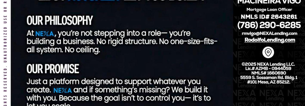 Hi, my name is Rodolfo Macineira Vigo. I’m a Loan Officer with NEXA Lending LLC., offering personalized mortgage solutions, fast customized quotes, great rates and service with integrity.