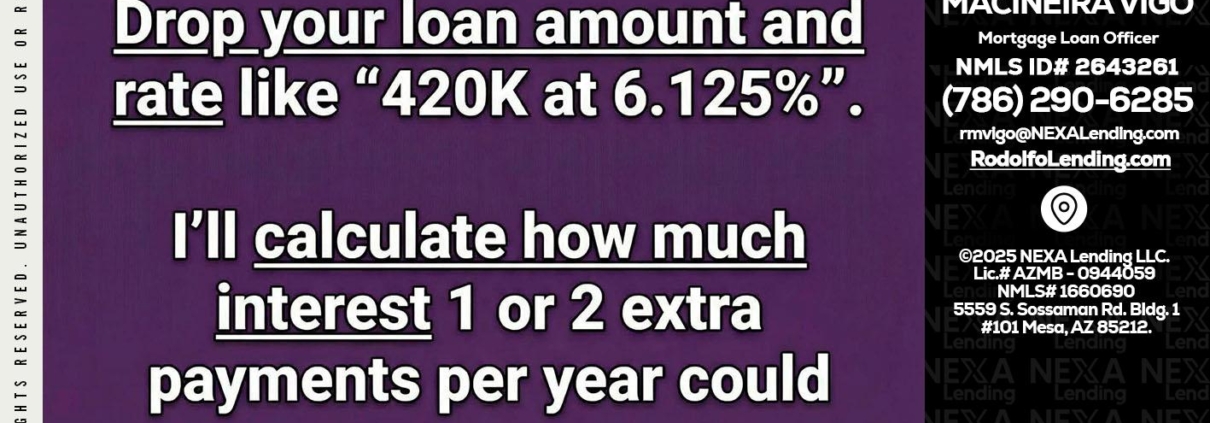 Hi, my name is Rodolfo Macineira Vigo. I’m a Loan Officer with NEXA Lending LLC., offering personalized mortgage solutions, fast customized quotes, great rates and service with integrity.