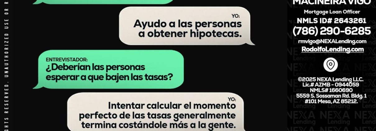 Hi, my name is Rodolfo Macineira Vigo. I’m a Loan Officer with NEXA Lending LLC., offering personalized mortgage solutions, fast customized quotes, great rates and service with integrity.