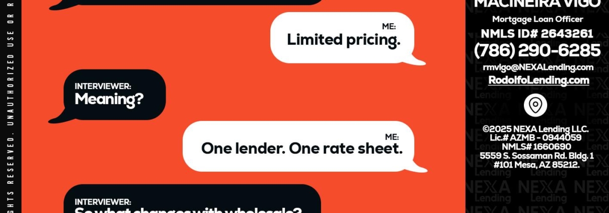 Hi, my name is Rodolfo Macineira Vigo. I’m a Loan Officer with NEXA Lending LLC., offering personalized mortgage solutions, fast customized quotes, great rates and service with integrity.