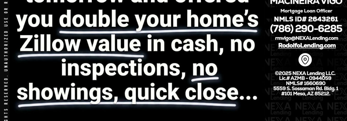 Hi, my name is Rodolfo Macineira Vigo. I’m a Loan Officer with NEXA Lending LLC., offering personalized mortgage solutions, fast customized quotes, great rates and service with integrity.