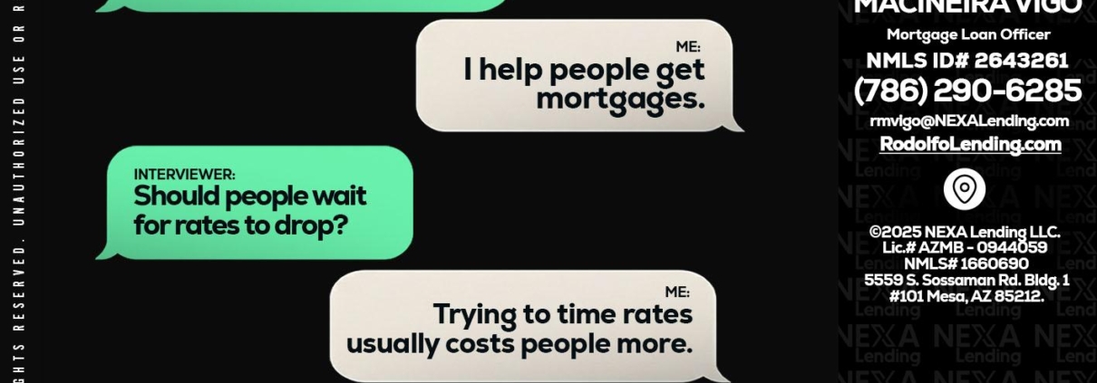 Hi, my name is Rodolfo Macineira Vigo. I’m a Loan Officer with NEXA Lending LLC., offering personalized mortgage solutions, fast customized quotes, great rates and service with integrity.